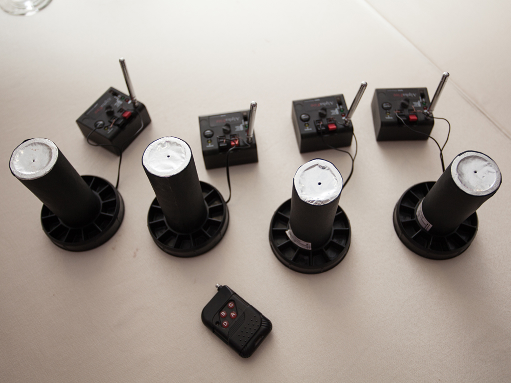 Set 4 sori rotitori fiecare cu cate 4 artificii de interior cu flacara rece , fara fum cu durata de 30 secunde, inaltime de 2 metri si declansare wirelles,